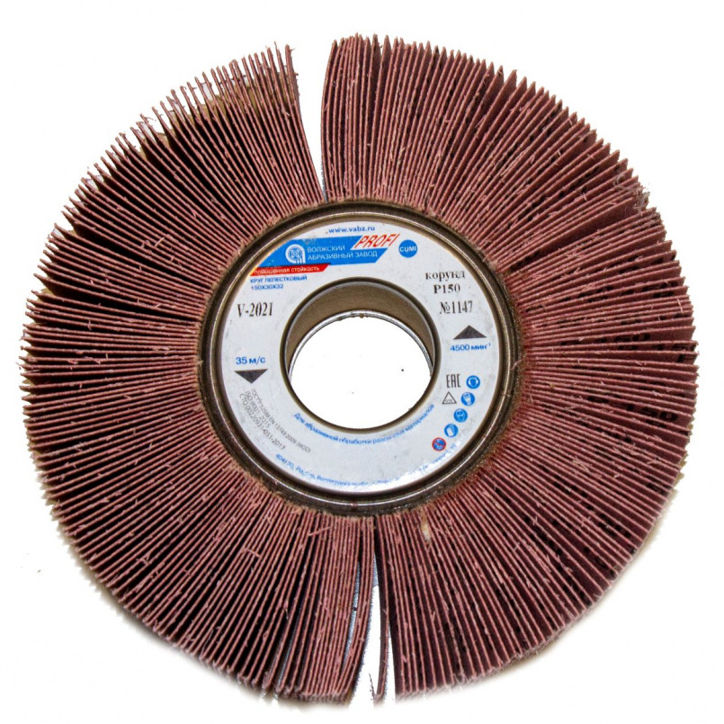 Круги лепестковые изготовлены по СТО 00220931-051-2017 из электрокорунда нормального.