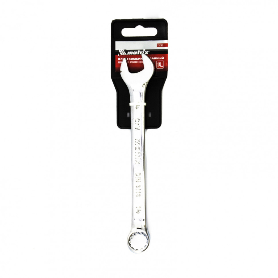 Ключ комбинированный, 14 мм, CrV, полированный хром Matrix 15158