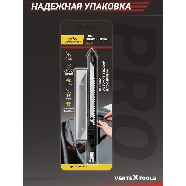 Нож тонировщика 9мм, автоблок, металл, лезвие SK5 Vertextools Profi
